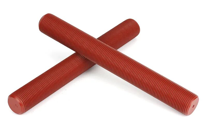 A pile of metal threaded rods